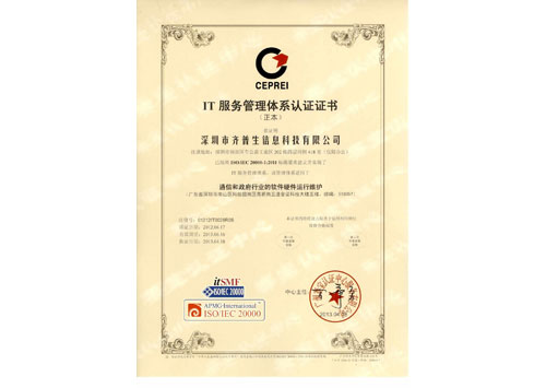 IT服務管理體系認證證書