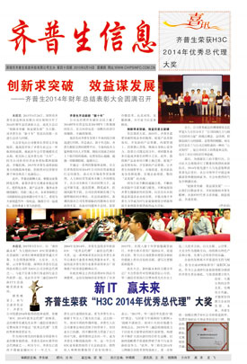 新IT 贏未來 齊普生榮獲“H3C 2014年優(yōu)秀總代理”大獎(jiǎng)